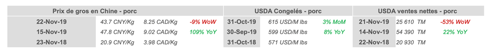 • En novembre, la population porcine aurait chuté de 22% par rapport à l'année précédente, ce qui aurait amené les prix du porc vivant à atteindre un niveau record, selon le Bureau des statistiques générales du Vietnam. Ce serait la plus forte baisse mensuelle et la 8e baisse mensuelle consécutive depuis la découverte du PPA au Vietnam en février, selon les données historiques compilées par Bloomberg.