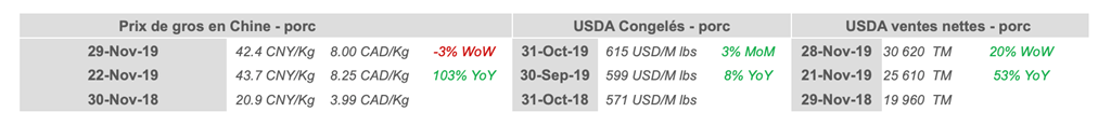 • La Chine, premier consommateur mondial de porc, vise à ramener sa capacité d'élevage porcin à des niveaux normaux en 2021, selon un plan d'action publié par leur ministère de l'Agriculture.