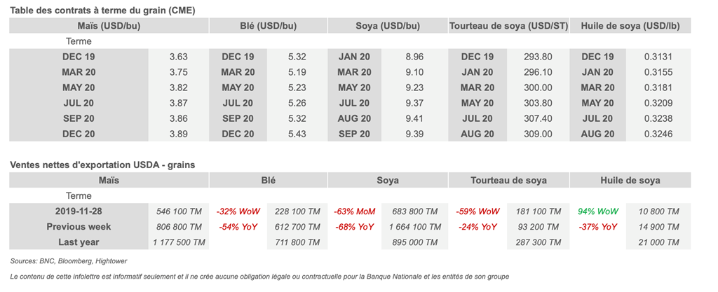 • Le rapport WASDE a montré que les stocks de clôture, le rendement des cultures et les exportations de maïs et de soya aux États-Unis étaient inchangés par rapport aux niveaux de novembre.