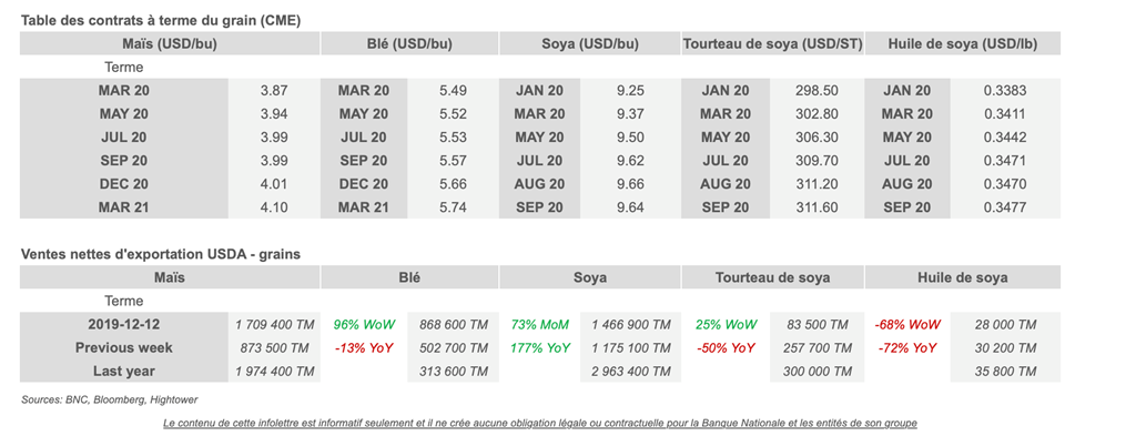 • Bien que la réaction à l'accord commercial avec les États-Unis et la Chine ait été décevante sur le marché du porc américain, la clôture du contrat d'avril à son plus haut depuis le 15 novembre est une évolution positive.
