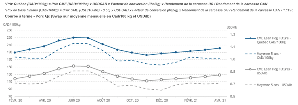• Le prix comptant du porc était à 59,17 USD hier, légère baisse par rapport à vendredi dernier.