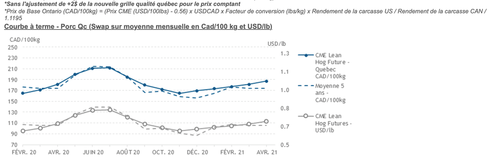 Voici les prix les plus récents sur le marché du porc et des grains: