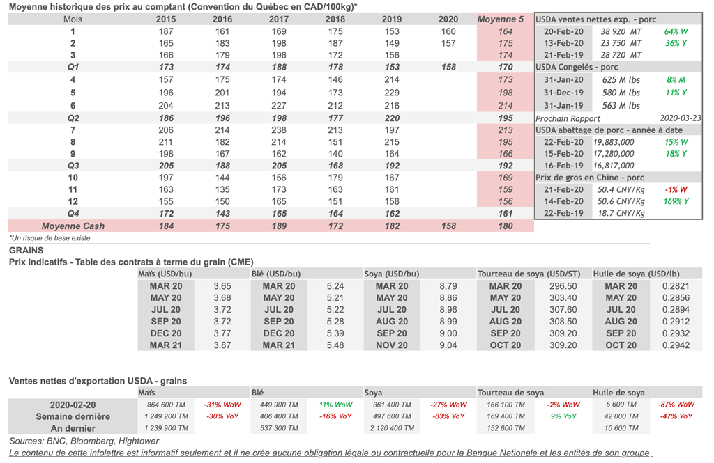 • 27 février : USDA — Ventes nettes d’exportations pour les grains et le porc