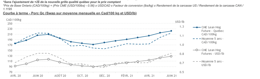 Voici les prix les plus récents sur le marché du porc et des grains: