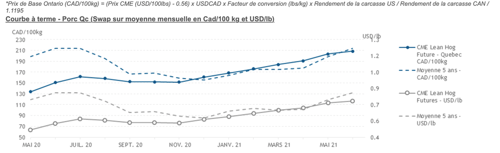 • La valeur de la coupe de porc aux États-Unis a continué de baisser et a terminé à 51,41 USD/lb (-6,0%) hier.