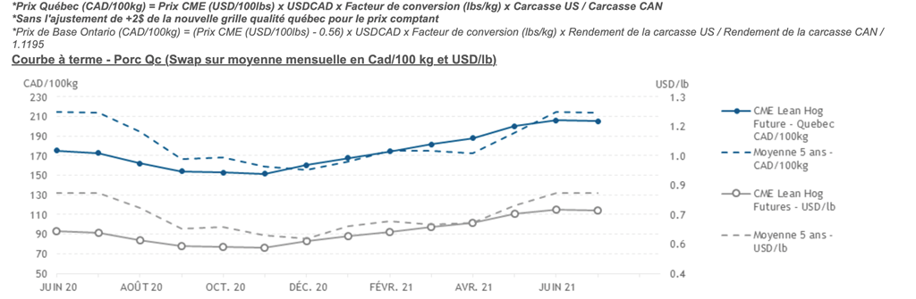 • Les contrats de porc ont terminé la journée en baisse vendredi pour toutes les échéances. Les contrats venant à maturité en 2021 ont tous perdu plus de 3 cents USD/lb.