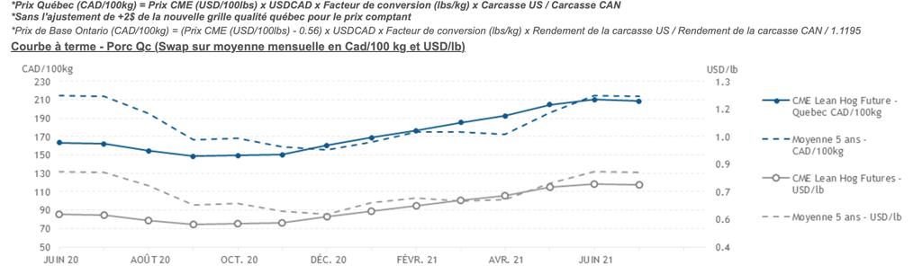 • La découpe de porc U.S. continue de reculer à 107,46 cents USD/lb, en baisse de 2,66 cents USD/lb.