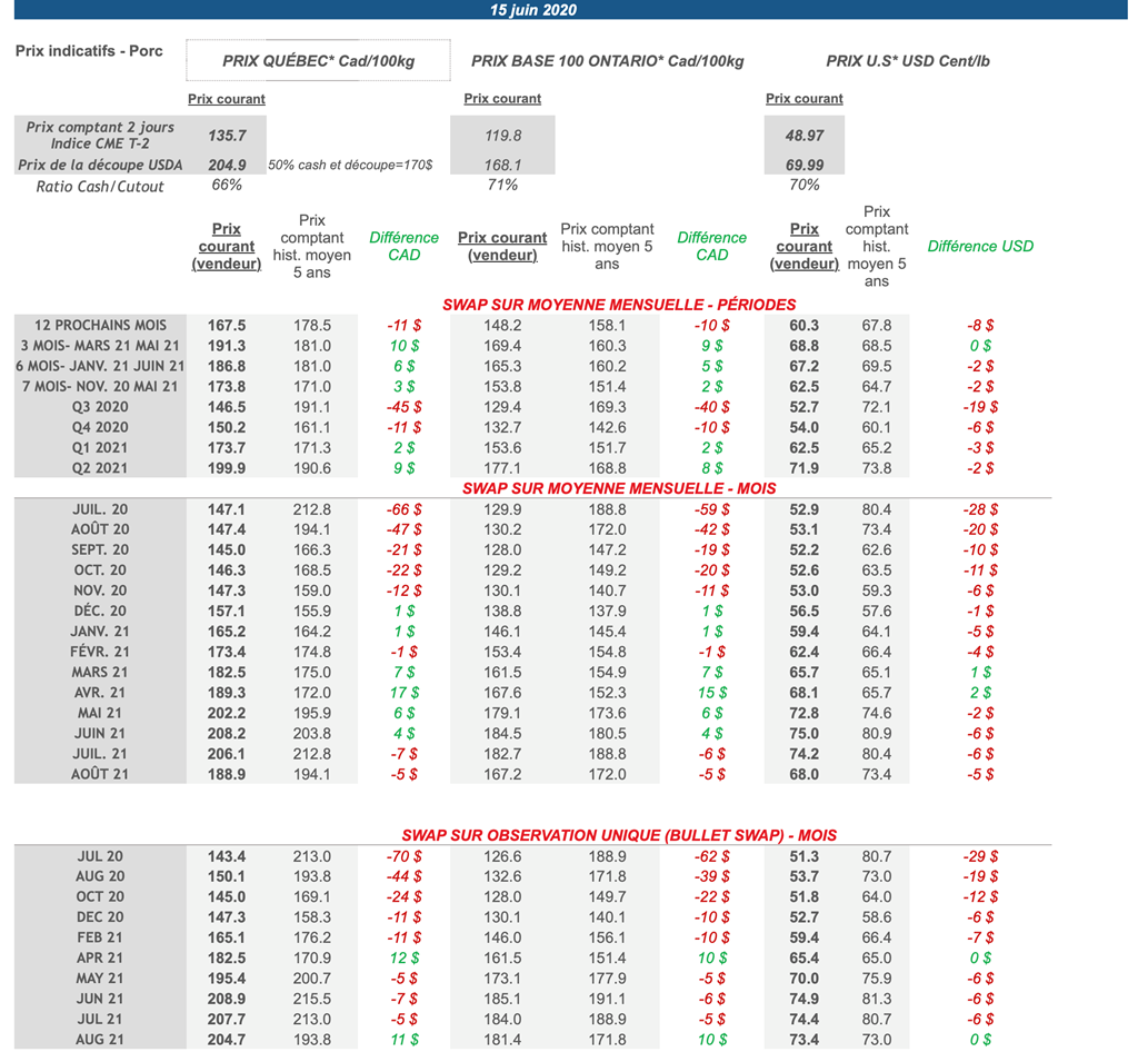 • Le contrat de LH de juin 2020 et les échéances à plus long terme ont terminés en légère hausse alors que les échéances de juillet, août et octobre 2020 étaient en baisse.
