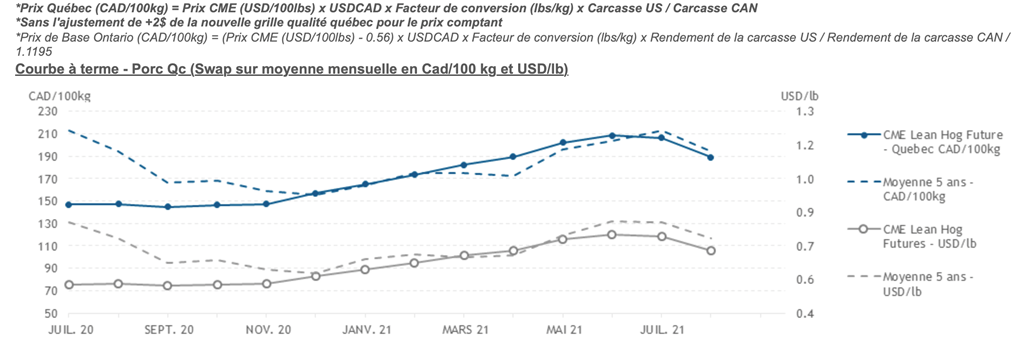 • Les contrats futures en Chine sur le maïs sont à leur plus haut niveau depuis 2015 alors que le cheptel chinois porcin se reconstruit malgré les épisodes de peste porcine africaine. La production chinoise porcine continue d'augmenter et le nombre de truies reproductrices aurait été en hausse de 4% en mai comparativement à avril, selon le ministère chinois de l'Agriculture et des Affaires rurales.