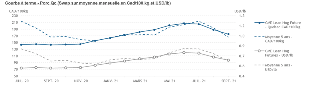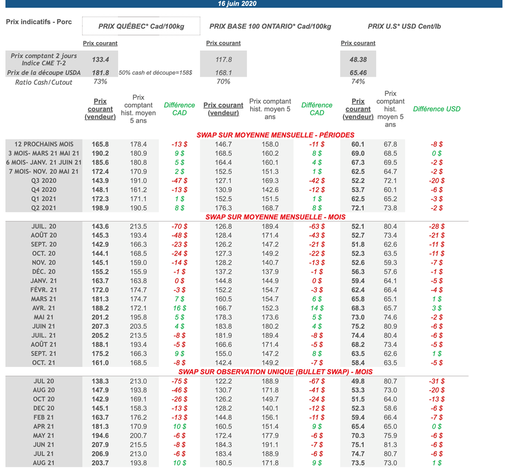 • Les contrats de porc étaient majoritairement en hausse hier, à l'exception des contrats de décembre 2020 et 2021.