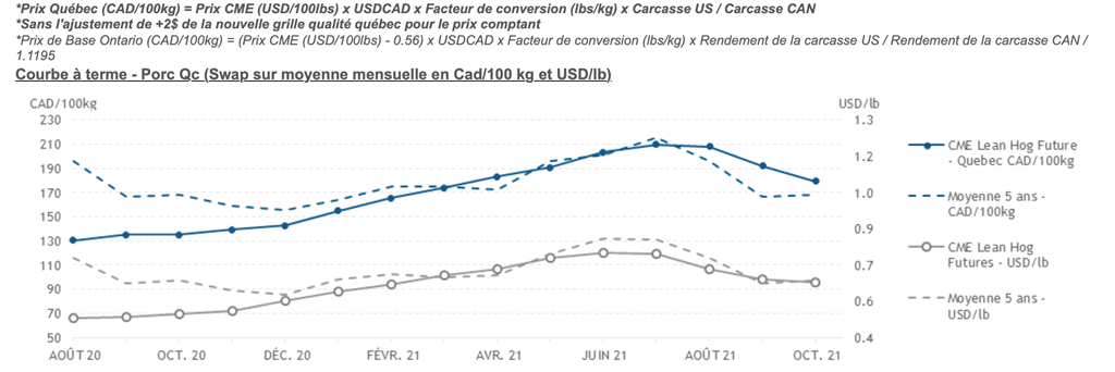Voici les prix les plus récents sur le marché du porc et des grains: