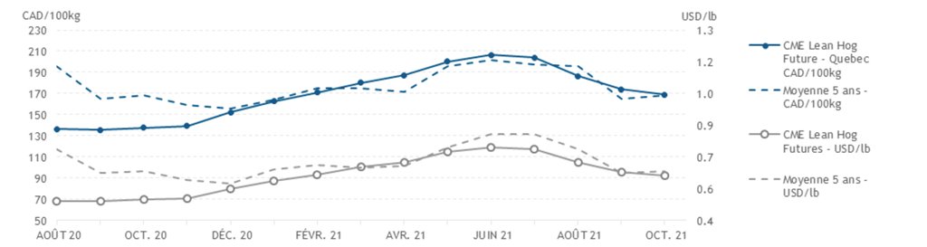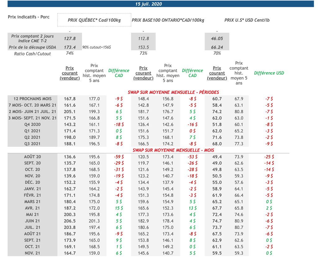 • Lundi, les contrats de porcs ont terminé la journée majoritairement en hausse, tandis que hier, les contrats des échéances à long terme ont continué leur progression et ceux à court terme ont reculé. Le contrat de juillet 2021 expirera aujourd'hui.