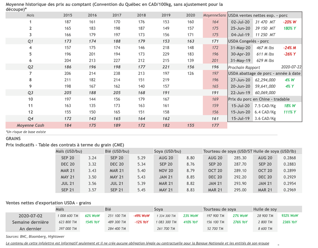 • 16 juillet: USDA — Ventes nettes d’exportations pour les grains et le porc