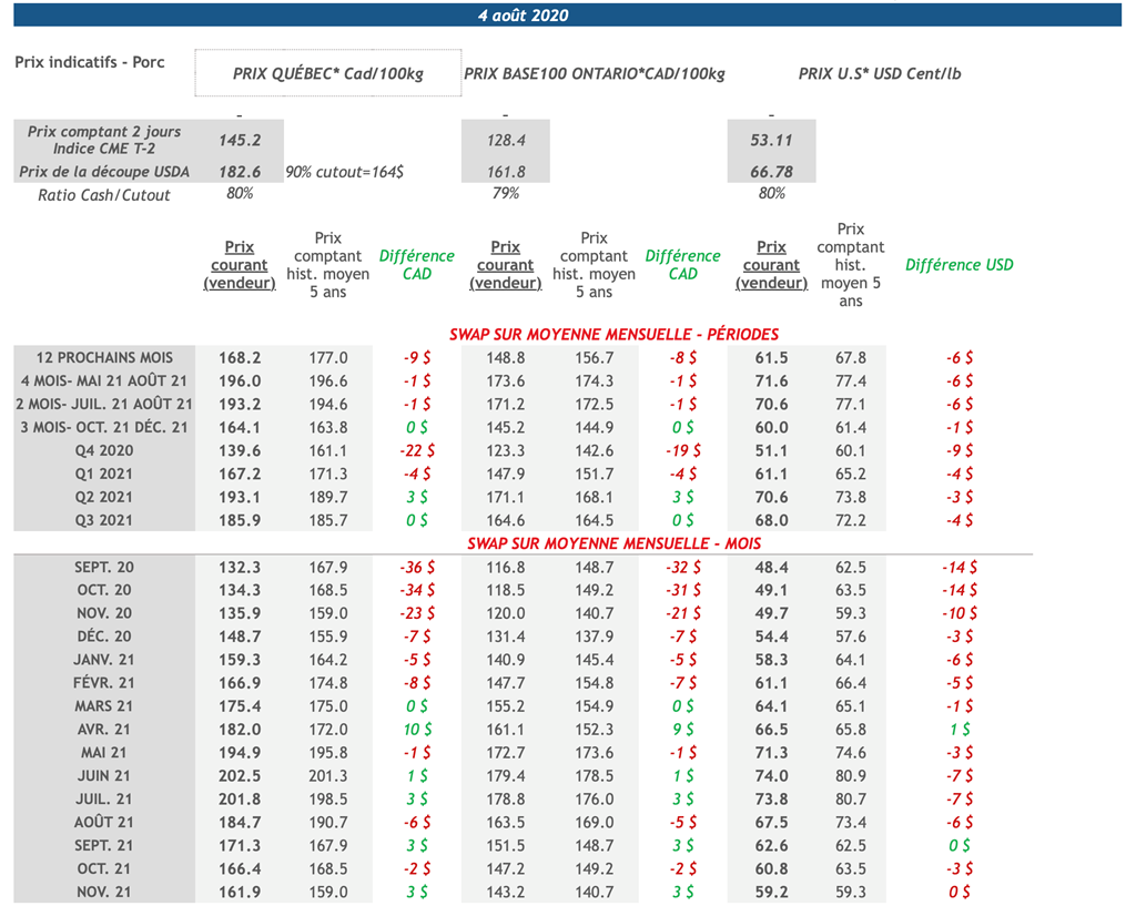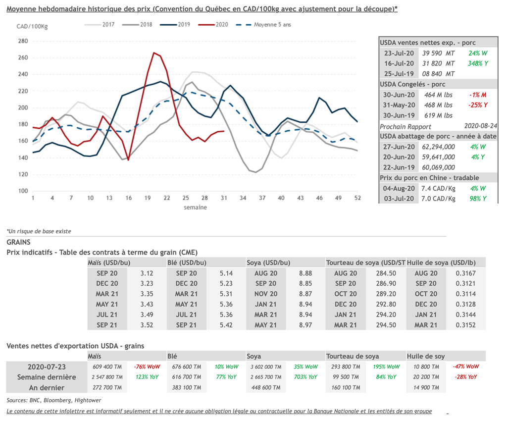 • 6 août: USDA — Ventes nettes d’exportations pour les grains et le porc