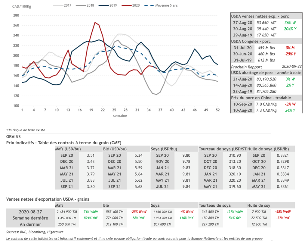 • 11 septembre : USDA — Ventes nettes d’exportations pour les grains et le porc