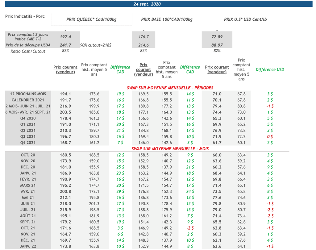 • 24 septembre : USDA — Rapport trimestriel Hogs and Pigs