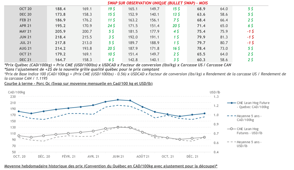 • Les variations sur les prix des contrats de porcs étaient mixes hier. Les contrats d'avril-21 à août-21 sont ceux qui se sont repliées, malgré que très légèrement.