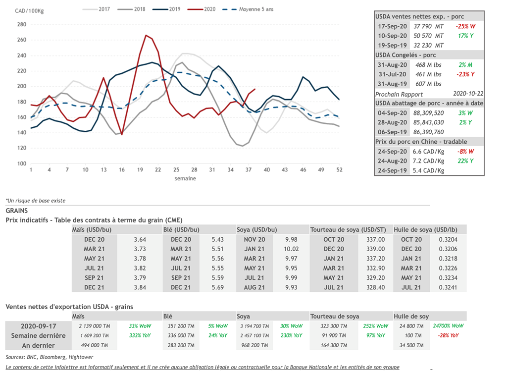 • 1 octobre : USDA — Ventes nettes d’exportations pour les grains et le porc