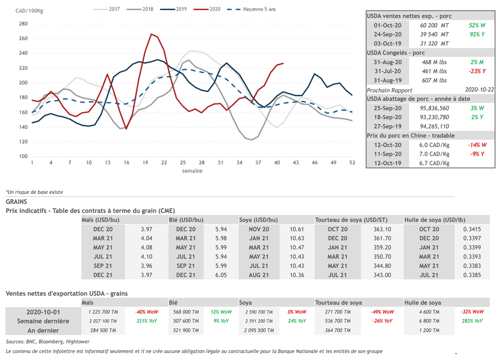 • 16 octobre : USDA — Ventes nettes d’exportations pour les grains et le porc