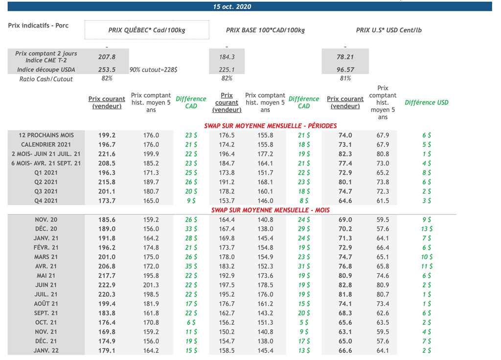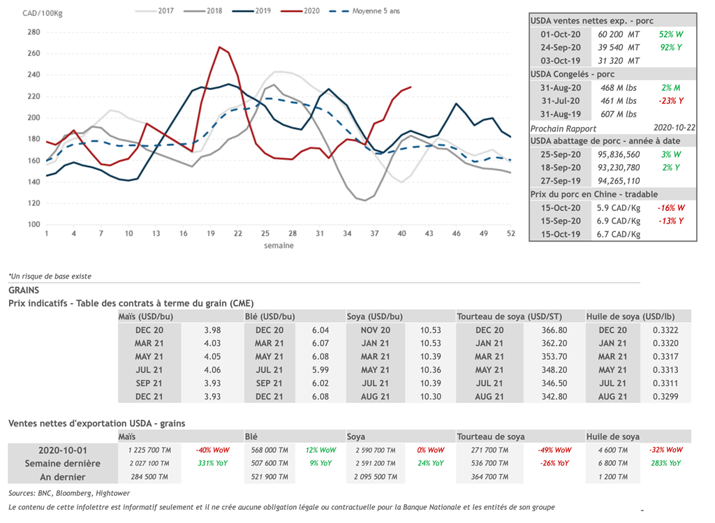 • 16 octobre : USDA — Ventes nettes d’exportations pour les grains et le porc