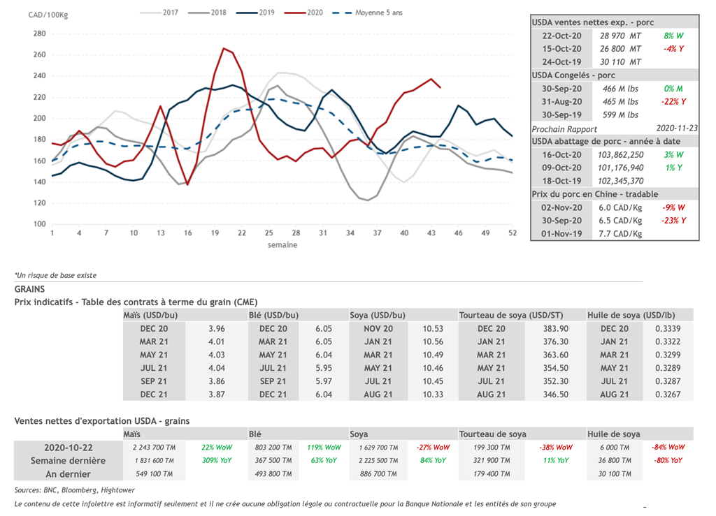 • 5 novembre : USDA — Ventes nettes d’exportations pour les grains et le porc