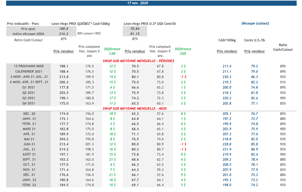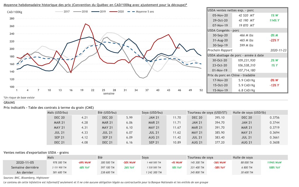 • 19 novembre : USDA — Ventes nettes d’exportations pour les grains et le porc