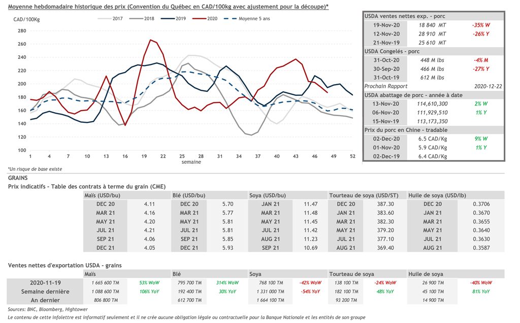 • 3 décembre : USDA — Ventes nettes d’exportations pour les grains et le porc