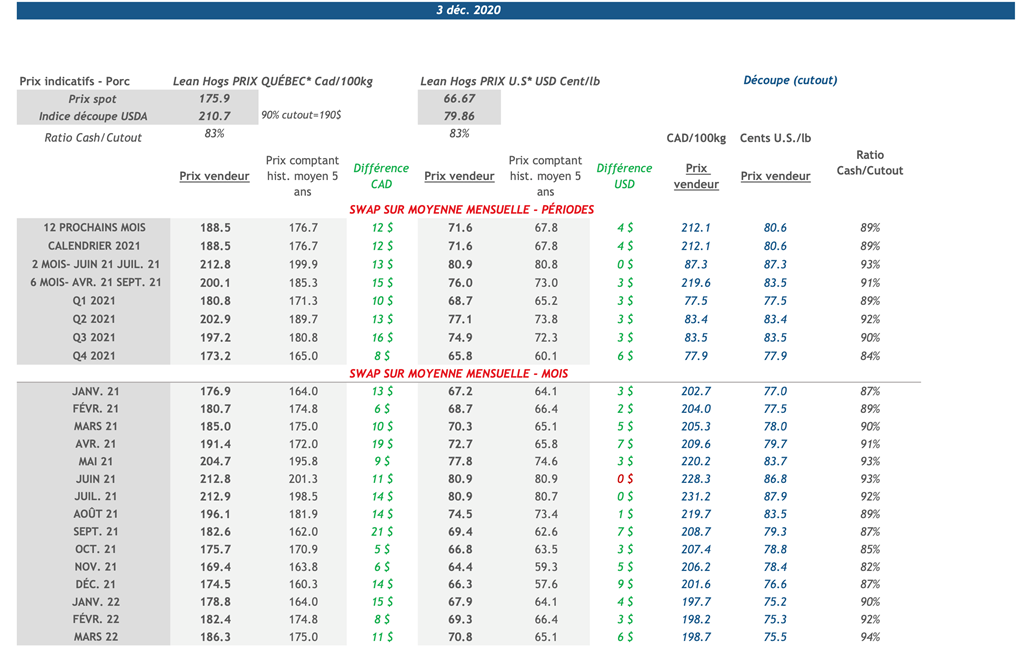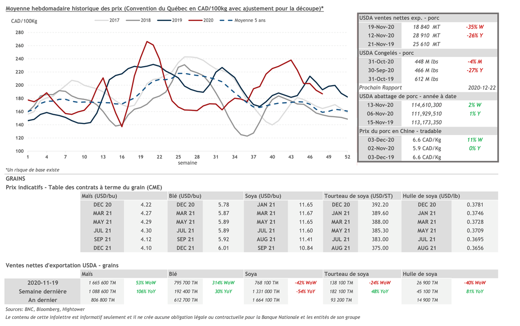 • 3 décembre : USDA — Ventes nettes d’exportations pour les grains et le porc