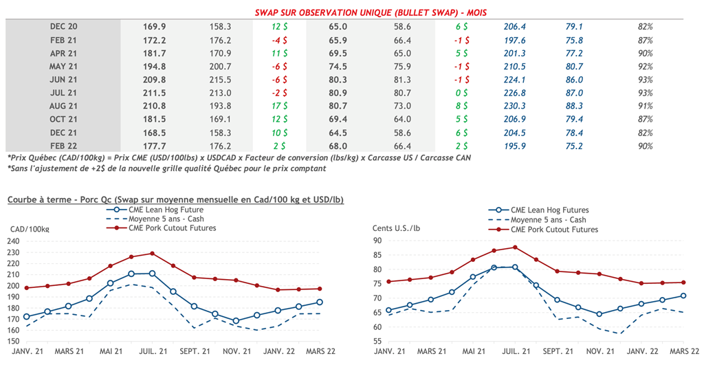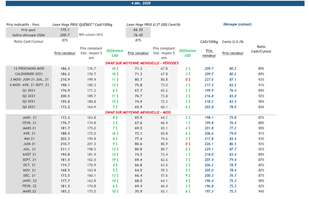 • Les contrats de porc ont terminé la journée dans le rouge hier pour une deuxième journée d’affilée pour les contrats de décembre 2020 à août 2021. Les échéances à plus long terme ont fait des gains pour leur part.