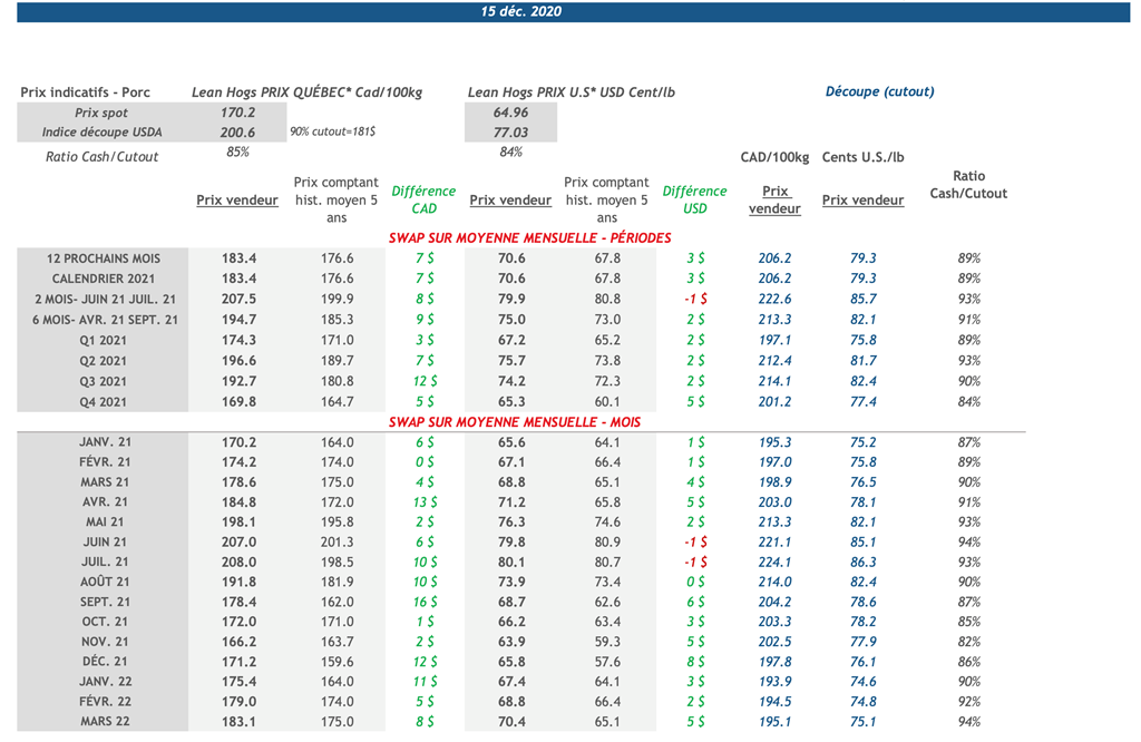 • 17 décembre : USDA — Ventes nettes d’exportations pour les grains et le porc