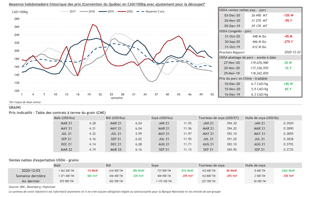 • 17 décembre : USDA — Ventes nettes d’exportations pour les grains et le porc
