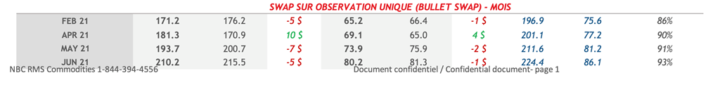• Même son de cloche du côté du maïs ; les contrats sont en hausse ce matin à Chicago. Commodity Weather Group a présenté ses prévisions météorologiques et s’attend à du temps sec d’avril à mai au Brésil. Cela pourrait avoir un impact négatif sur la production de maïs safrinha. On s’attend également à du temps sec pour le mois de février en Argentine.