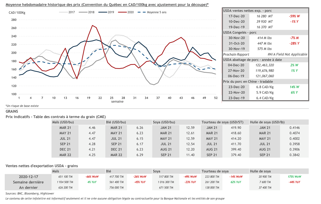 • 23 décembre : USDA — Ventes nettes d’exportations pour les grains et le porc
