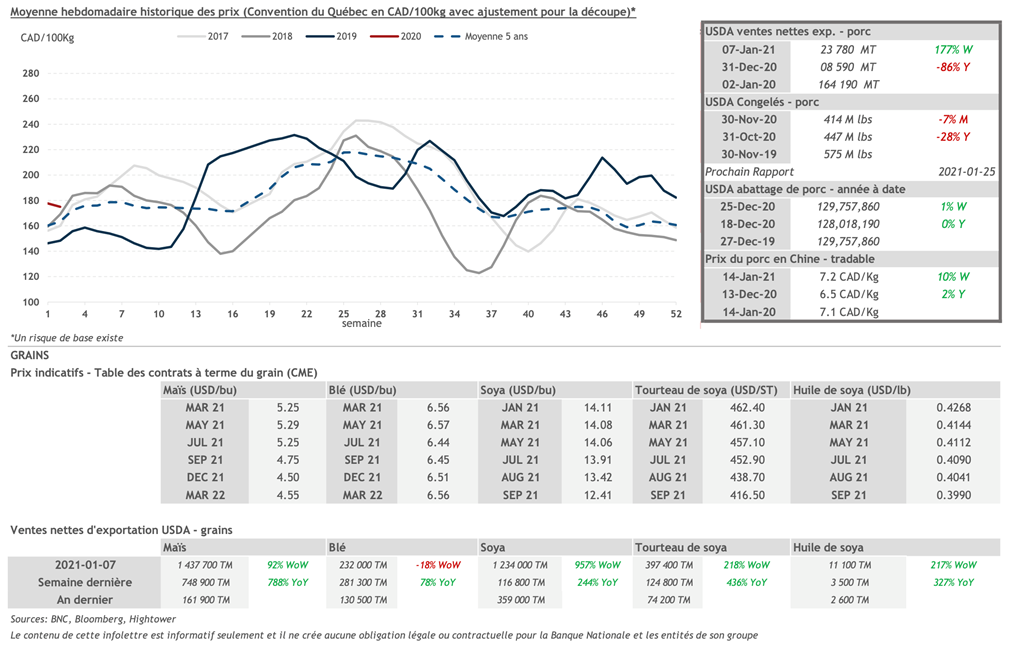 • 21 janvier : USDA — Ventes nettes d’exportations pour les grains et le porc
