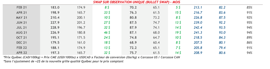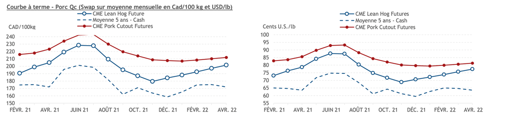 • Les contrats de porcs ont terminé la journée en légère hausse hier pour toutes les échéances sauf celle de février. Les gains sont demeurés sous la barre de 1 cent US/lb.