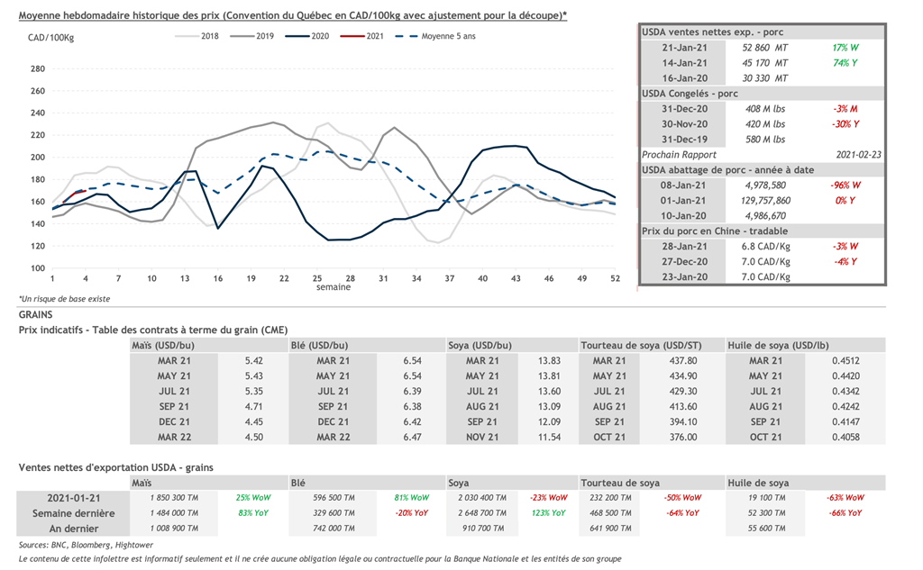 • 28 janvier : USDA — Ventes nettes d’exportations pour les grains et le porc