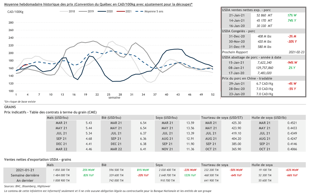 • 3 février : USDA — Ventes nettes d’exportations pour les grains et le porc
