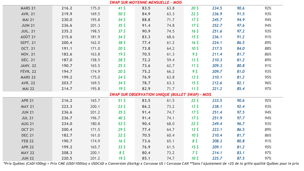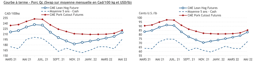 • Les contrats de porc ont terminé la journée dans le rouge hier à l'exception de de août-21 et oct.-21 qui ont pris une légère avance.