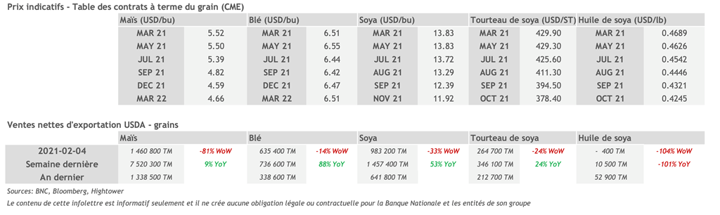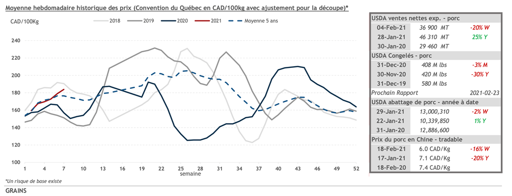 • 19 février : USDA — Ventes nettes d’exportations pour les grains et le porc