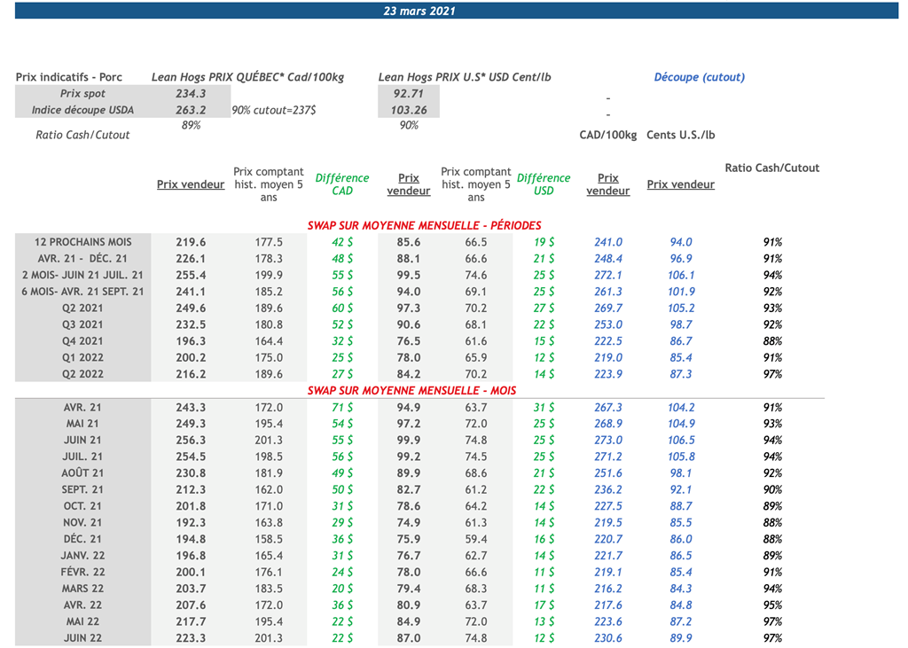 • 25 mars : USDA — Rapport trimestriel Hogs and Pigs (T1)
