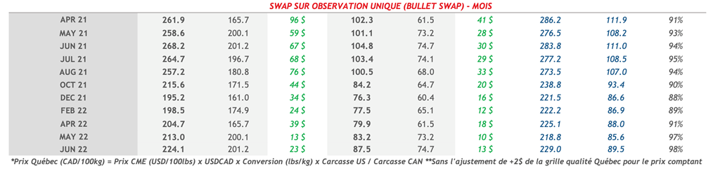 • Les contrats de porc ont terminé la journée en baisse hier, sauf pour le mois d'avril-21 qui demeure résilient à 102,40 cents US/lb.