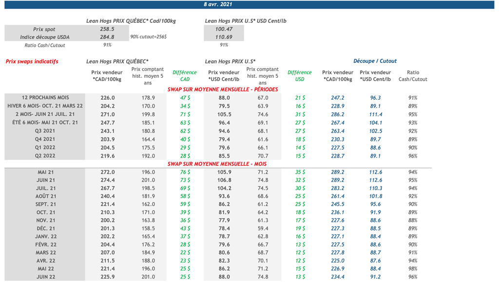 • 15 avril : USDA — Ventes nettes d’exportations pour les grains et le porc