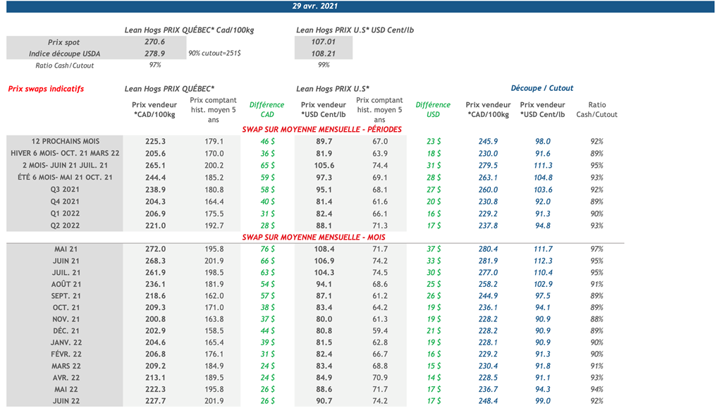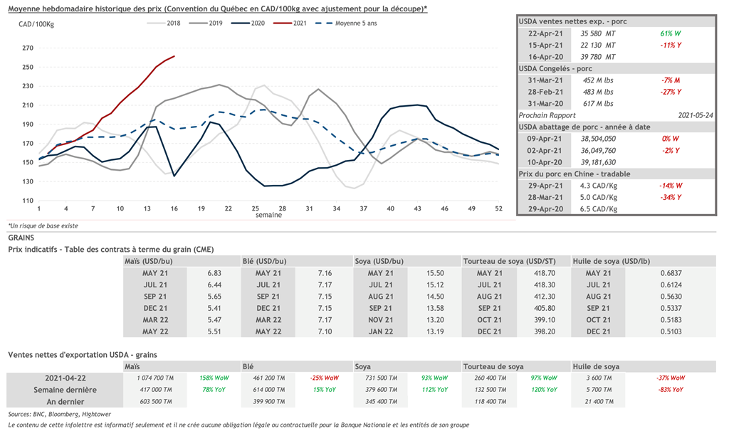 • 6 mai : USDA — Ventes nettes d’exportations pour les grains et le porc