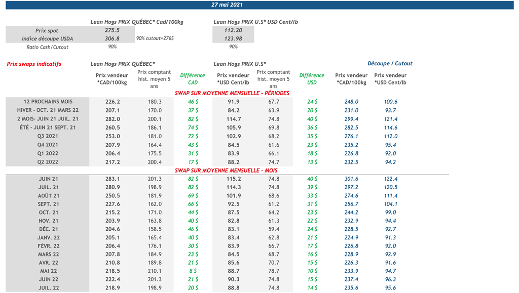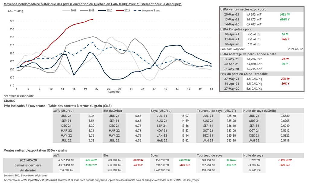 • 27 mai : USDA — Ventes nettes d’exportations pour les grains et le porc