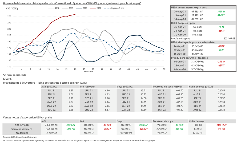 • 3 juin : USDA — Ventes nettes d’exportations pour les grains et le porc