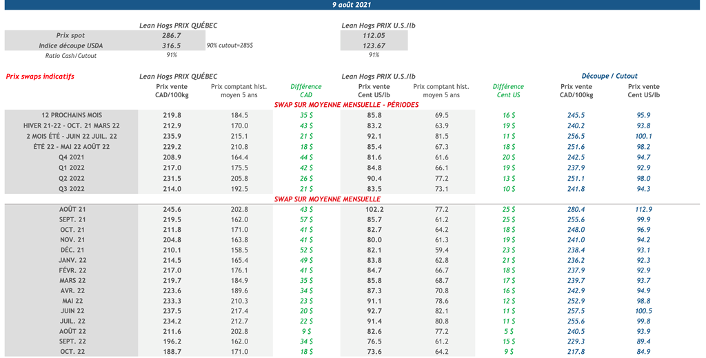 • 12 août : USDA — Ventes nettes d’exportations pour les grains et le porc