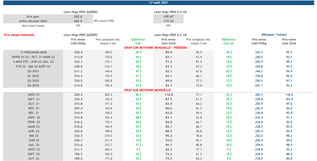 • 19 août : USDA — Ventes nettes d’exportations pour les grains et le porc