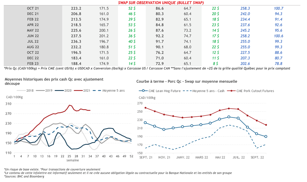 o L'offre de porc canadiens pour la 1e moitié de 2021 est à son plus haut depuis 2008 avec 29.7 millions.