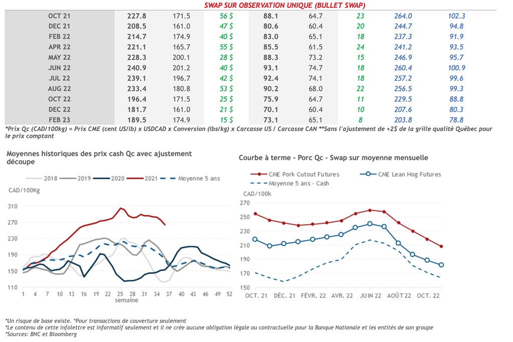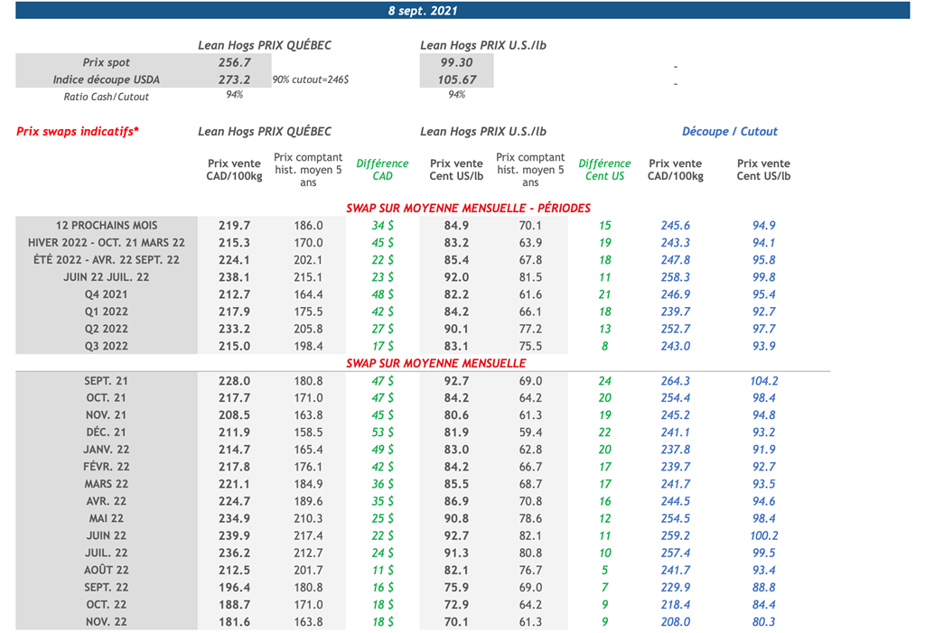 • 10 septembre : USDA — Ventes nettes d’exportations pour les grains et le porc