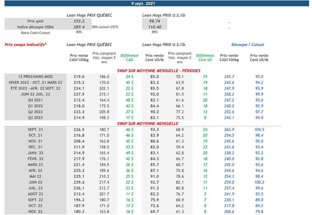 • 10 septembre : USDA — Ventes nettes d’exportations pour les grains et le porc
